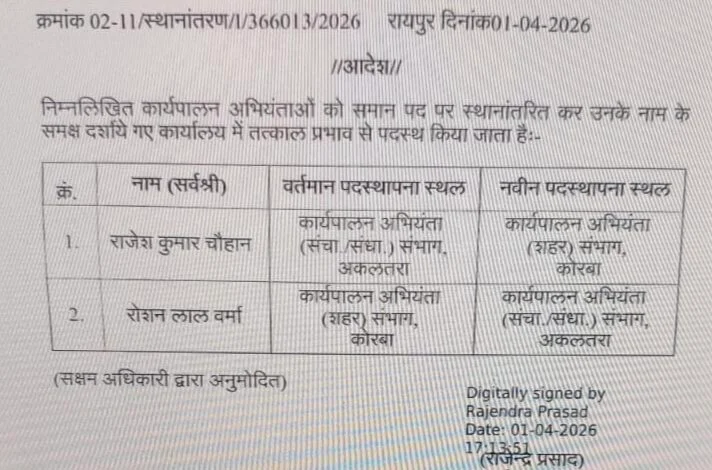 CG Police Transfer List 2026 : पुलिस महकमे की ‘नई फील्डिंग’, 29 निरीक्षक और 1 सब-इंस्पेक्टर की बदली जगह, पीएचक्यू ने जारी की लिस्ट