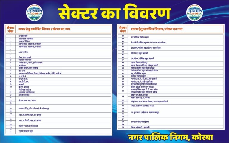कोरबा। आगामी कार्यक्रम को लेकर प्रशासन द्वारा विशेष ट्रैफिक प्लान जारी किया गया है। इसके अंतर्गत समस्त सम्माननीय आगंतुकों, वाहन...