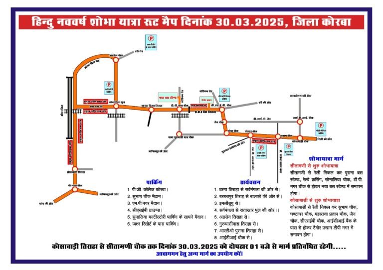 कोरबा जिले में हिंदू नववर्ष शोभा यात्रा का आयोजन 30 मार्च 2025 को किया जाएगा। इस यात्रा के लिए एक...
