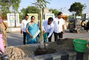 ( महापौर श्रीमती संजूदेवी राजपूत ने आयुक्त श्री आशुतोष पाण्डेय की उपस्थिति में किया रोड डिवाईडर प्लाटेंशन का लोकार्पण )
