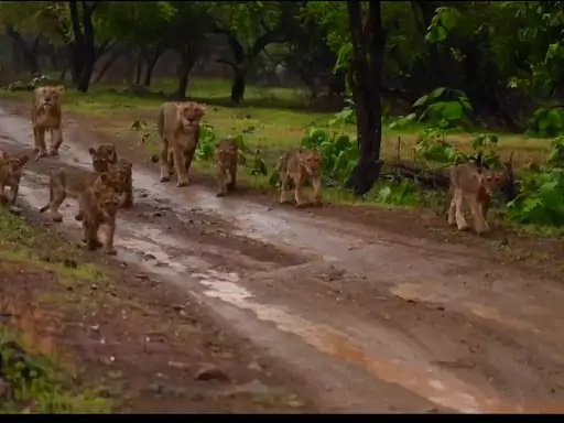 मानसून की बारिश थमते ही यह शेर परिवार जंगल में घूमने निकल पड़ा। तालाला से विसावदर तक 15 किलोमीटर लंबे इस मार्ग से गुजरने वाले स्थानीय लोग और पर्यटक यह नजारा देख हैरान और उत्साहित हो गए।