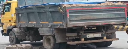 रेत से भरे टिप्पर से टपक रहा था पानी