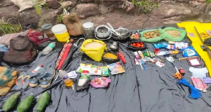 छत्तीसगढ़ बॉर्डर के जंगलों में नक्सली डंप बरामद, हथियार और विस्फोटक सामग्री जब्त
