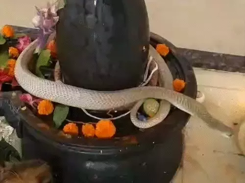 शिवभक्ति का अद्भुत दृश्य: पिटारे से निकलते ही शिवलिंग पर पहुँचा सांप
