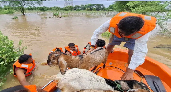 भारी बारिश के बीच बड़ा हादसा टला, SDRF ने तीन ग्रामीणों और बकरियों को बचाया