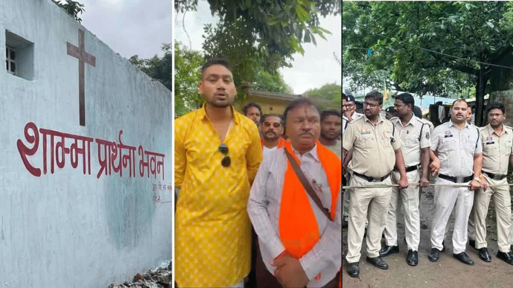 रायपुर, 27 जुलाई 2025 — राजधानी रायपुर स्थित WRS कॉलोनी में रविवार को उस समय माहौल तनावपूर्ण हो गया जब बजरंग दल और विश्व हिंदू परिषद के कार्यकर्ताओं ने एक अवैध भवन में चल रही प्रार्थना सभा के खिलाफ जोरदार विरोध प्रदर्शन किया। प्रदर्शनकारियों का आरोप है कि इस भवन का उपयोग धर्मांतरण के लिए किया जा रहा है।
