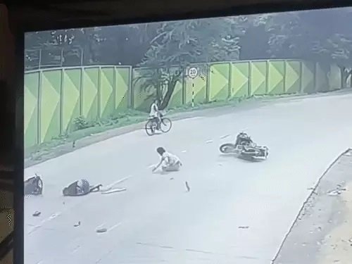 तेज रफ्तार बाइक की भिड़ंत, सड़क पर गिरे तीन युवक