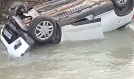 मंदिर जा रहे श्रद्धालुओं की कार पुल से गिरी