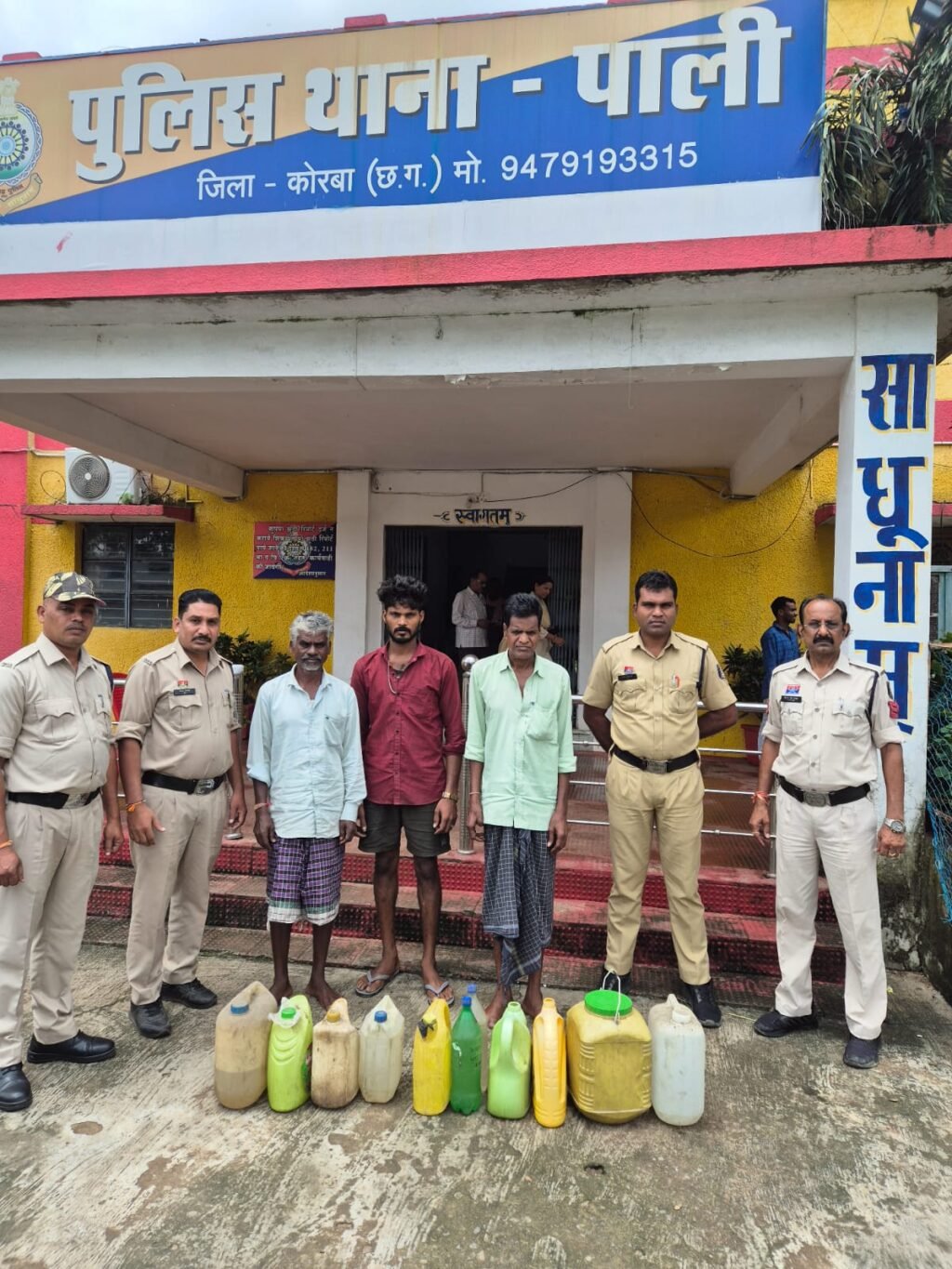 पाली थाना पुलिस की बड़ी कार्रवाई: 76 लीटर अवैध महुआ शराब जब्त, 7 आरोपी गिरफ्तार