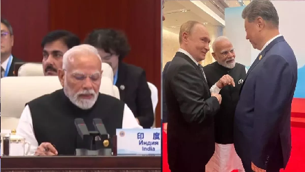 प्रधानमंत्री नरेंद्र मोदी चीन के तियानजिन में शंघाई सहयोग परिषद (एससीओ) शिखर सम्मेलन स्थल पर पहुंचे। प्रधानमंत्री मोदी ने रूसी राष्ट्रपति व्लादिमीर पुतिन और चीनी राष्ट्रपति शी जिनपिंग के साथ भी खुलकर बातचीत की। पीएम एससीओ नेताओं को संबोधित कर रहे हैं।