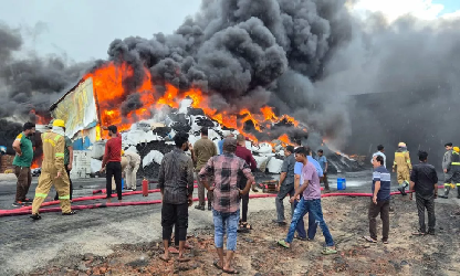 अचानक लगी आग ने देखते ही देखते फैक्ट्री के बड़े हिस्से को अपनी चपेट में ले लिया। टायरों की कतरन धू-धू कर जल उठी, जिससे उठी ऊंची लपटें और काला धुआं करीब दो किलोमीटर दूर से ही दिखाई देने लगा।