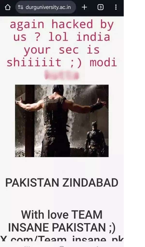 यह घटना सोमवार को उस समय उजागर हुई, जब यूनिवर्सिटी के कुछ छात्रों और स्टाफ सदस्यों ने वेबसाइट (www.durguniversity.ac.in) खोली। मुख्य पेज पर ही प्रधानमंत्री मोदी की तस्वीर के साथ आपत्तिजनक और गाली-गलौज वाले नारे लिखे हुए थे।