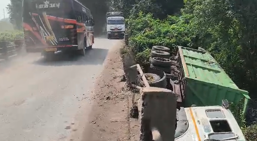 कोरबा: ट्रक पुल से नीचे गिरा, बड़ा हादसा टला