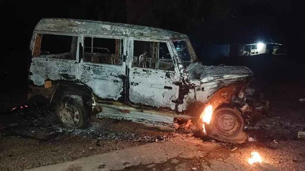 जगदलपुर। छत्तीसगढ़ के बस्तर जिले में गुरुवार-शुक्रवार की दरमियानी रात रफ्तार का कहर देखने को मिला। कोड़ेनार थाना क्षेत्र अंतर्गत ग्राम किलेपाल के पास देर रात करीब 1 बजे बोलेरो और कार की आमने-सामने जोरदार भिड़ंत हो गई। हादसा इतना भीषण था कि दोनों वाहन आग की लपटों में घिर गए और देखते ही देखते जलकर खाक हो गए।
