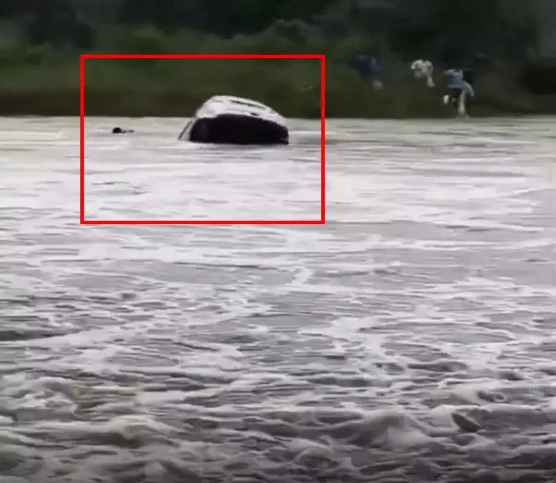 तेज बहाव में बही Swift कार, 3 ने कूदकर बचाई जान