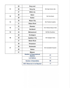 Chhattisgarh Congress : रायपुर। छत्तीसगढ़ कांग्रेस में संगठन को ज़मीनी स्तर पर मज़बूत करने की कवायद तेज़ हो गई है। प्रदेश कांग्रेस कमेटी ने जिला अध्यक्षों के चुनाव के लिए रायशुमारी शुरू कर दी है, जिसके लिए विभिन्न जिलों में पर्यवेक्षकों (Observers) की नियुक्ति की गई है।