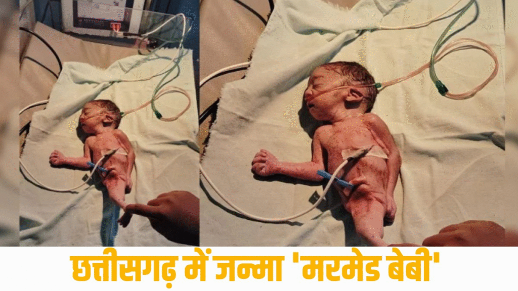 mermaid baby धमतरी | 3 अक्टूबर 2025| छत्तीसगढ़ के धमतरी जिला अस्पताल में एक महिला ने एक अत्यंत दुर्लभ शारीरिक विकृति से पीड़ित नवजात को जन्म दिया, जिसे मेडिकल भाषा में ‘मरमेड सिंड्रोम’ (Sirenomelia) कहा जाता है। इस दुर्लभ स्थिति में नवजात के दोनों पैर आपस में जुड़े हुए थे, जिससे उसका शरीर का निचला हिस्सा जलपरी (मरमेड) की तरह दिखाई दे रहा था।
