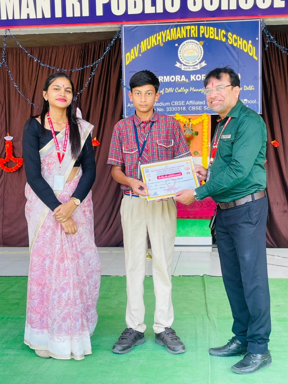 कार्यक्रम के अंत में, पूर्व में आयोजित सभी प्रतियोगिताओं के विजेताओं को प्रमाणपत्र प्रदान कर सम्मानित किया गया। इसके साथ ही हाल ही में आयोजित “RUN FOR DAV” मैराथन के विजेताओं को भी मंच पर बुलाकर प्राचार्य श्री हेमंतो मुखर्जी के द्वारा प्रमाणपत्र एवं मेडल देकर पुरस्कृत किया गया। बच्चों के चेहरों पर खुशी और गर्व साफ झलक रहा था।