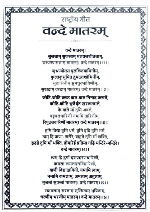 “सुजलाम् सुफलाम् मलयजशीतलाम्, शस्यश्यामलाम् मातरम्।”