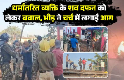 CG NEWS : धर्मांतरित सरपंच के पिता के शव दफन को लेकर बवाल, चर्च में आगजनी; शव कब्र से निकाला गया