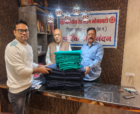 रेड क्रॉस सोसायटी कोरबा द्वारा मरीजों को कंबल एवं चादर वितरण