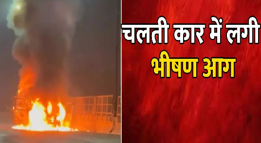 CG BRAKING : चलती गाड़ी बनी आग का गोला, चार लोगों ने कूदकर बचाई जान