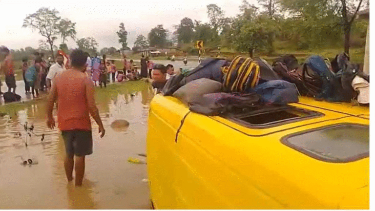 सूरजपुर. बच्चों से भरी स्कूल वैन अनियंत्रित होकर सड़क किनारे खेत में पलट गई. इस हादसे के बाद अफरा-तफरी मच गई....