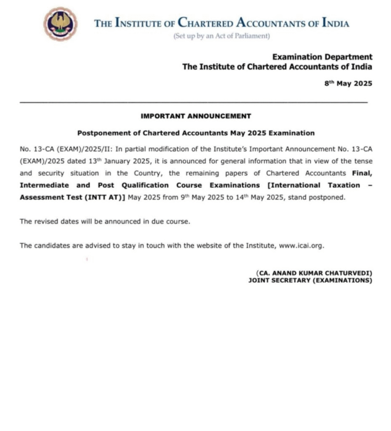 चार्टर्ड अकाउंटेंट्स परीक्षा रद्द कर दी गई है। भारत-पाकिस्तान युद्ध के बीच ICAI का फैसला एग्जाम को रद्द करने का...